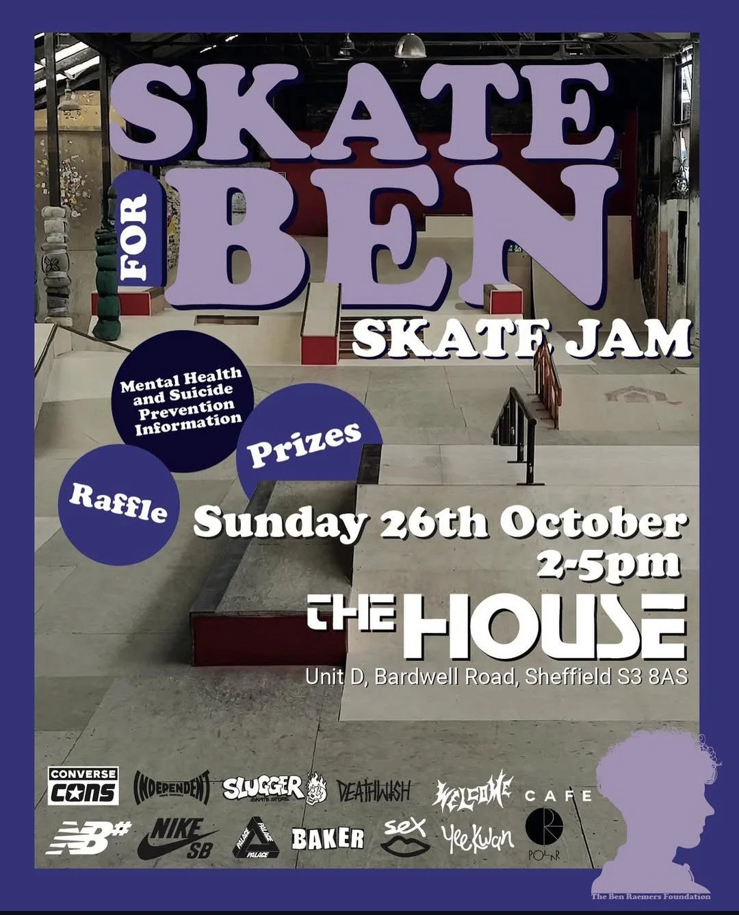 Sunday 26th we’re hosting the Ben Raemers Foundation for a skate jam. It’s free to get in for the jam and you’ll also find local organisations helping with good mental health and suicide prevention.